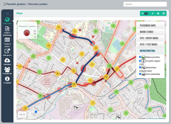 Strukovno udruženje Sigurne staze (www.sigurnestaze.com) dizajniralo je pametno rešenje u oblasti urbane mobilnosti tako što je ukrstilo otvorene podatke o javnom prevozu u Kragujevcu i dostupne podatke o kvalitetu vazduha sa mernih stanica u tom gradu. Na taj način, omogućen je uvid u emisiju štetnih gasova na trasama javnog gradskog prevoza.