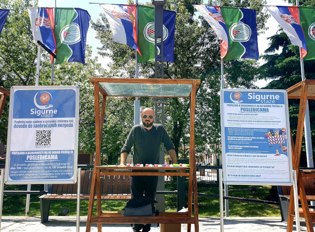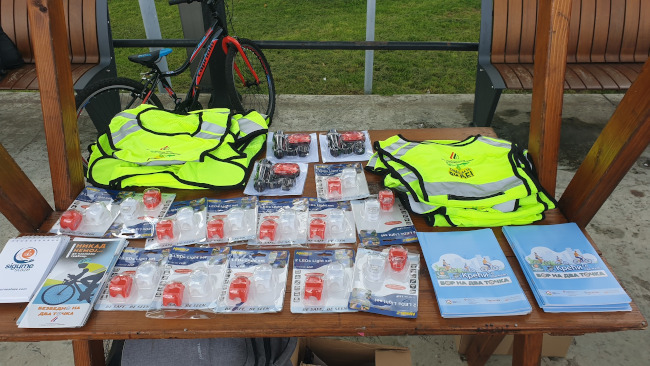 Присутни ученици и грађани су од Института добили светла за бицикл, приручник о основним правилима саобраћаја са бициклисте, светлоодбојни прслук и информативне летке.