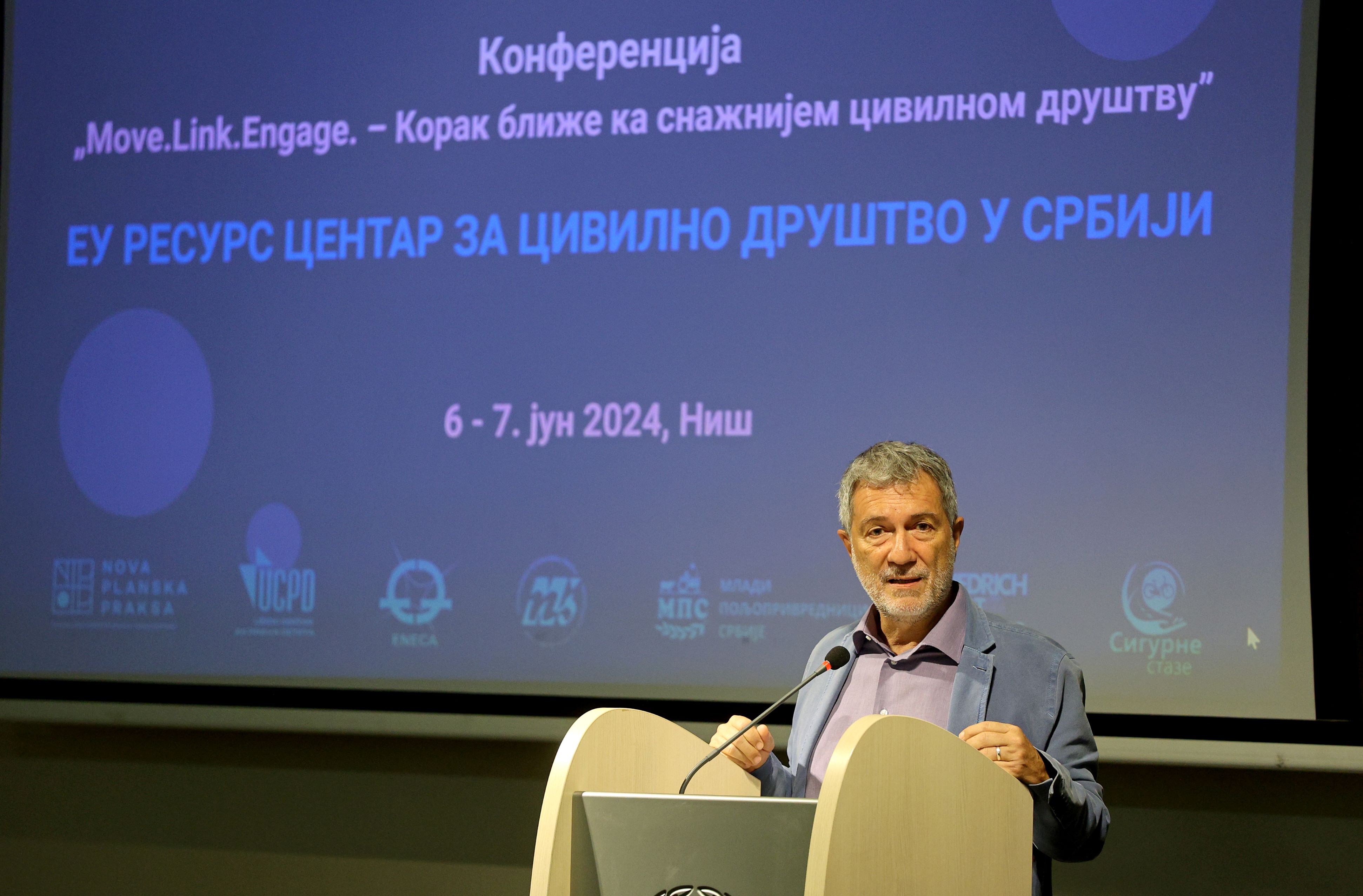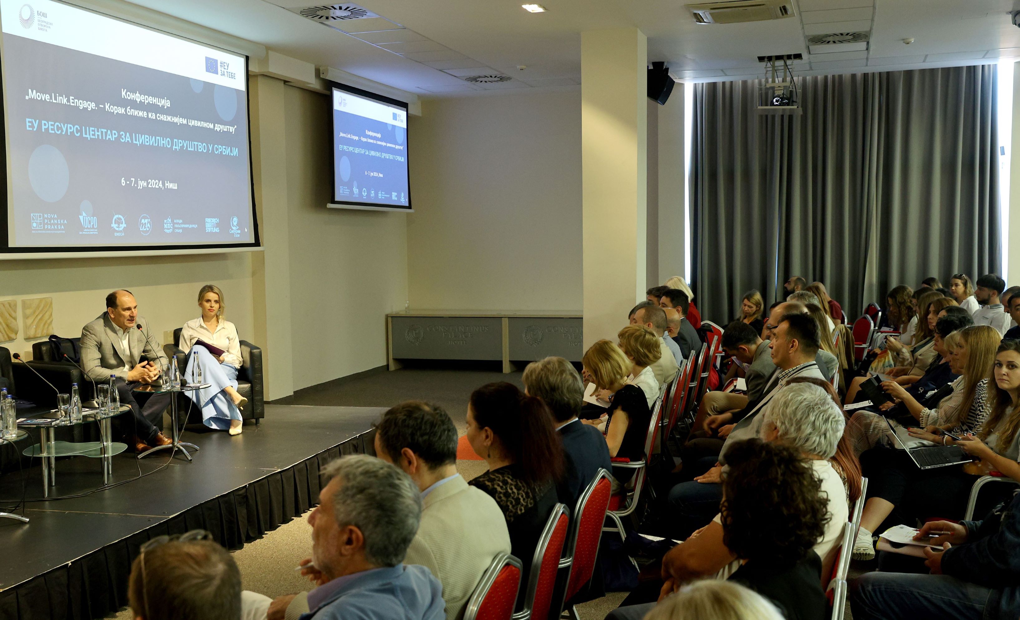 На конференцији „Move.Link.Engage. – Корак ближе ка снажнијем цивилном друштву“ одржаној у Нишу, која је окупила више од 150 представника цивилног сектора републичке и локалне власти и пословне заједнице, саговорници су оценили да снажно цивилно друштво има значајну улогу у процесу приступања Србије Европској унији и да је стога неопходно да што већи број организација цивилног друштва буде укључено у израду законских и стратешких докумената, као и у креирање политике.