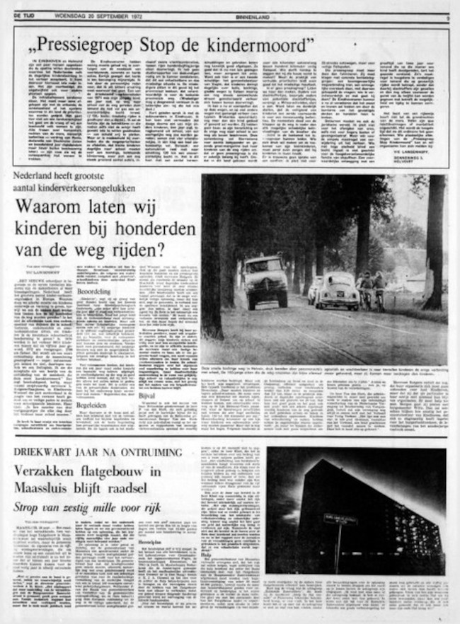 Виц Langenhoff се удружио са другим родитељима страдале деце, са којима покреће кампању за промену саобраћајног система. У својим новинама у септембру 1972 пише следеће „Неколико људи је устало који желе да пробију апатију са којом Холанђани прихватају свакодневно убијање деце у саобраћају”. Такође је објавио је манифест за промене: „Не залажем се за аутопутеве са 22 траке, већ за безбедне бициклистичке стазе”.