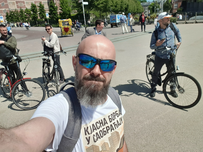 Na železničkoj stanici se nalazimo sa Draganom i Igorom iz Centra za životnu sredinu iz Banja Luke. Hvatamo voz. Stižemo u Amesterdam. Odlazimo da ostavimo prtljag i da rentiramo bicikle. Kreće vožnja od nekih četiri sata amsterdamskim ulicama.